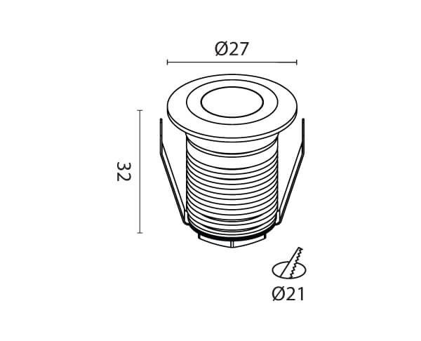 גוף תאורה שקוע רצפה לדק לשימוש תאורת חוץ. מקור אור 1W LED. זמין בצבע שחור.