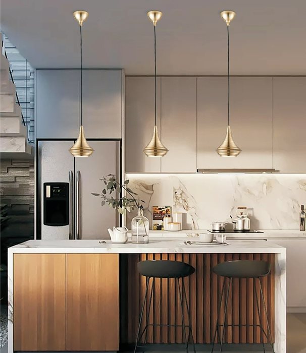 אלסה ELSA מנורת תליה קוטר 14 סמ' 6W LED גליל פסים זהב פליז